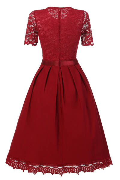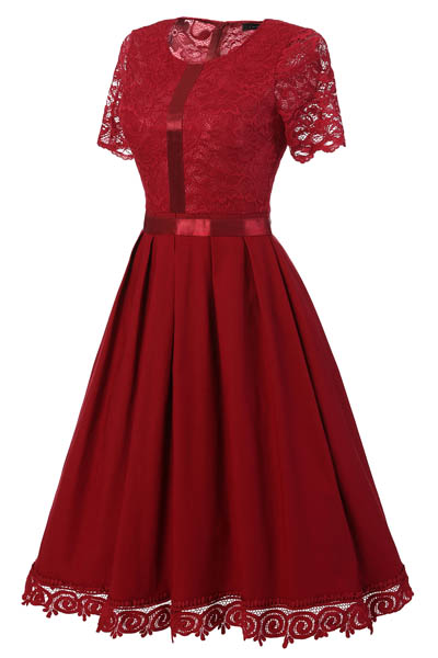 | Sexy Vintage Summer Lace Round Neck Short Sleeve Princess Dress L36176-3 |