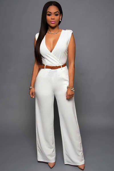 Deep V-Neck White Belted...