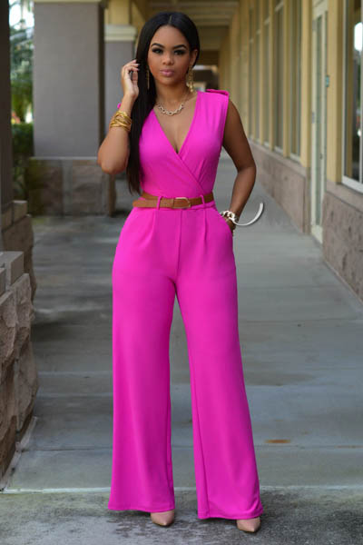 Deep V-Neck Belted Jumps...