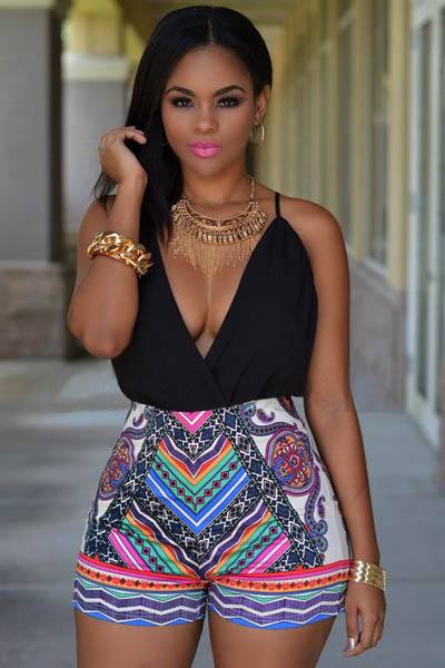 Belt Design V Neck Print...