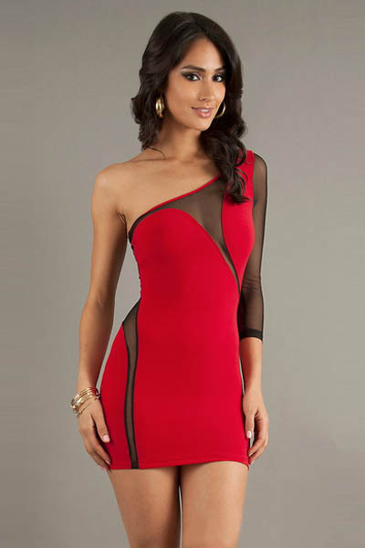 Short One Shoulder Red D...