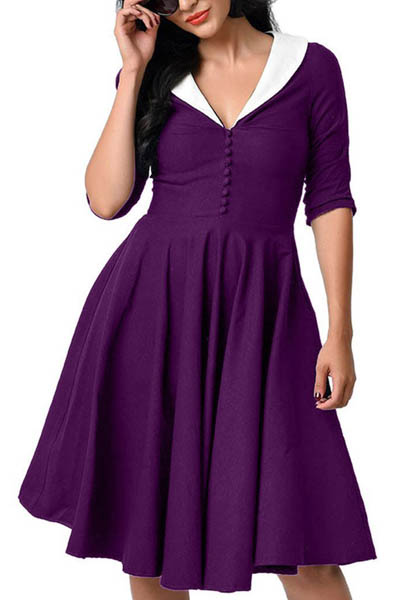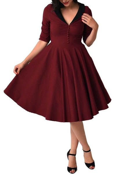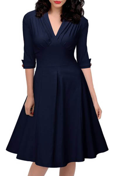 Women Retro Deep-V Neck ...